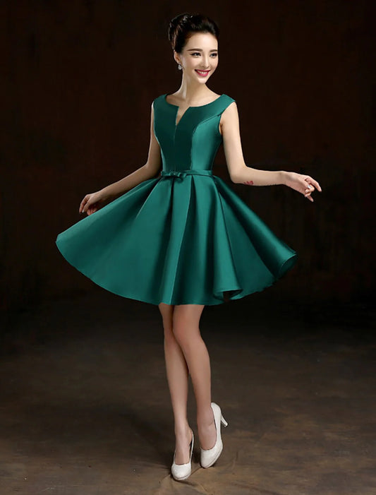 A-Line Cocktail Dresses Minimalist Dress Homecoming Short / Mini Sleeveless Jewel Neck Satin with Sash / Ribbon Bow(s)