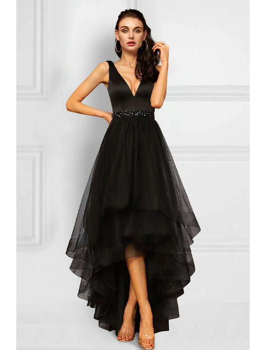 A-Line Cocktail Dresses Elegant Dress Party Wear Wedding Party Asymmetrical Sleeveless V Neck Organza with Rhinestone Ruffles