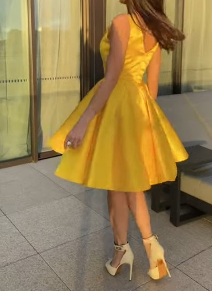 A-Line/Princess Sleeveless Scoop Sequin Satin Short/Mini Dresses Homecoming Dresses Cocktail Dresses