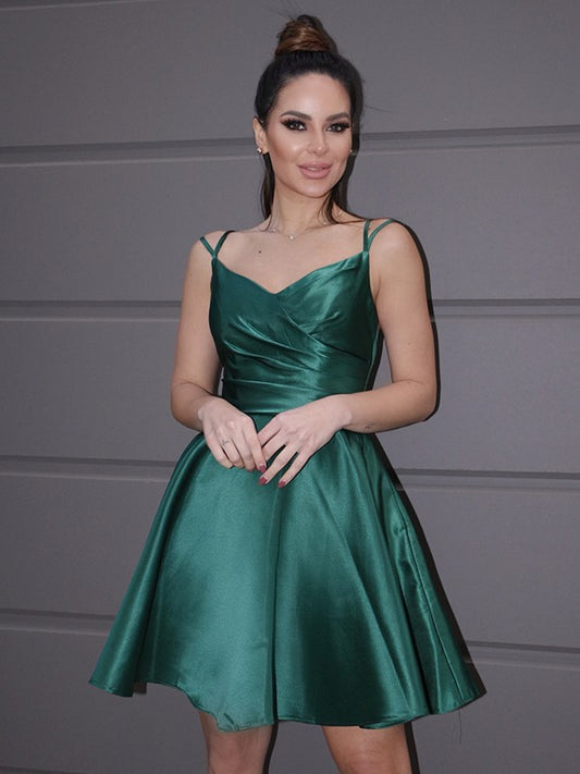 A-Line/Princess Satin Ruched Straps Sleeveless Short/Mini Homecoming Dresses