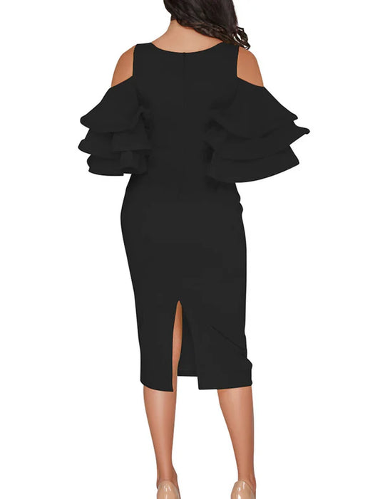 Sheath / Column Cocktail Dresses Sexy Dress Wedding Guest Cocktail Party Tea Length Half Sleeve V Neck Polyester with Ruffles