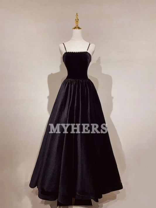 Formal Women's Dresses Wedding Guest Dresses Spaghetti Strap Charming Scoop Neck Velvet Long Side Fork Sweep Train Elegant Evening Dress