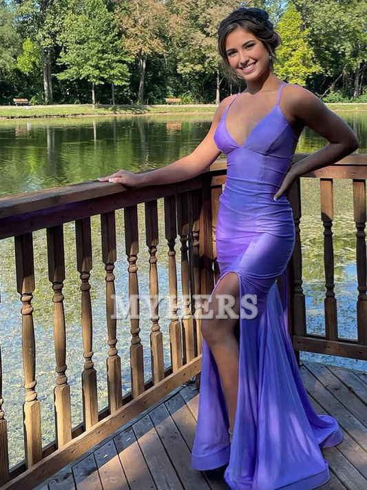 Formal Women's Dresses Wedding Guest Dresses Spaghetti Strap Sheath Mermaid Low-necked Prom Dress Lace-up Backless Side Fork Sweep Train Evening Dress