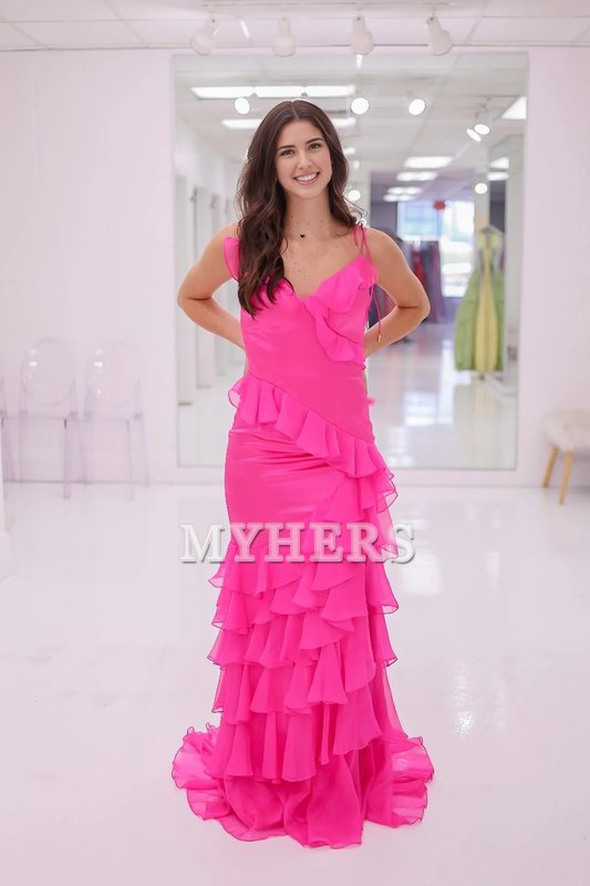 Formal Women's Dresses Wedding Guest Dresses Sweetheart Tie Shoulder Mermaid Ruffle Tiered Long Prom Dress Side Fork Sweep Train Charming Evening Dress