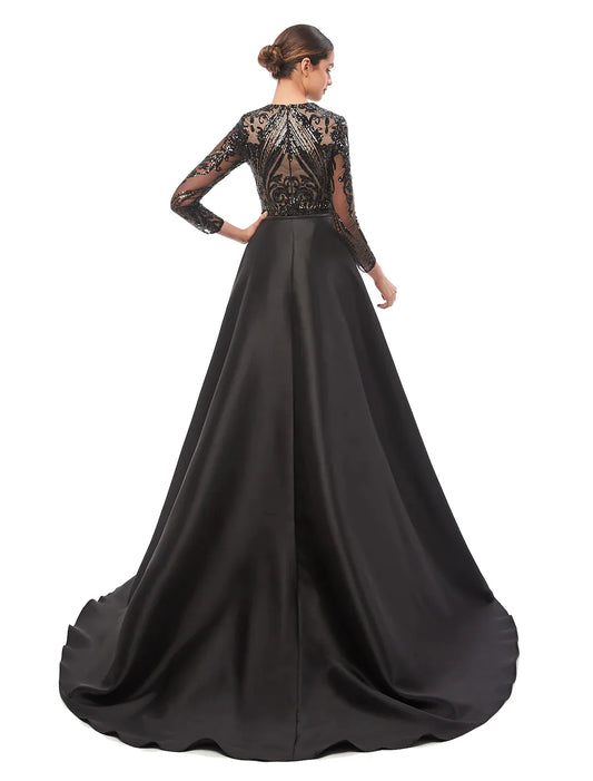 Mermaid / Trumpet Evening Gown Elegant Dress Engagement Court Train Long Sleeve V Neck Lace with Sequin