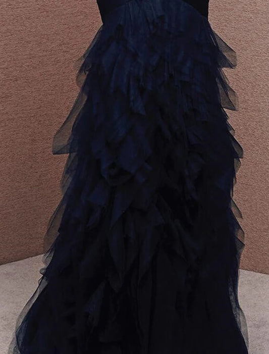 Mermaid / Trumpet Sexy Formal Evening Dress Strapless Sleeveless Floor Length Tulle with Ruched