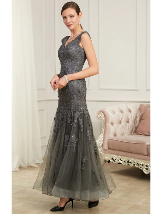 Mermaid / Trumpet Evening Gown Elegant Dress Party Wear Floor Length Sleeveless V Neck Polyester with Sequin Appliques