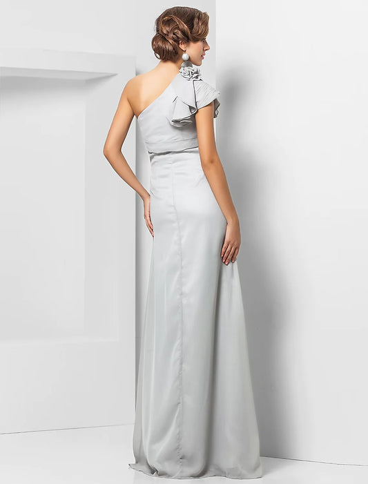 Sheath / Column Elegant Dress Wedding Guest Floor Length Sleeveless One Shoulder Chiffon with Sash / Ribbon Appliques