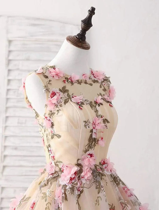 A-Line Cocktail Dresses Party Dress Homecoming Short / Mini Sleeveless Jewel Neck Satin with Appliques