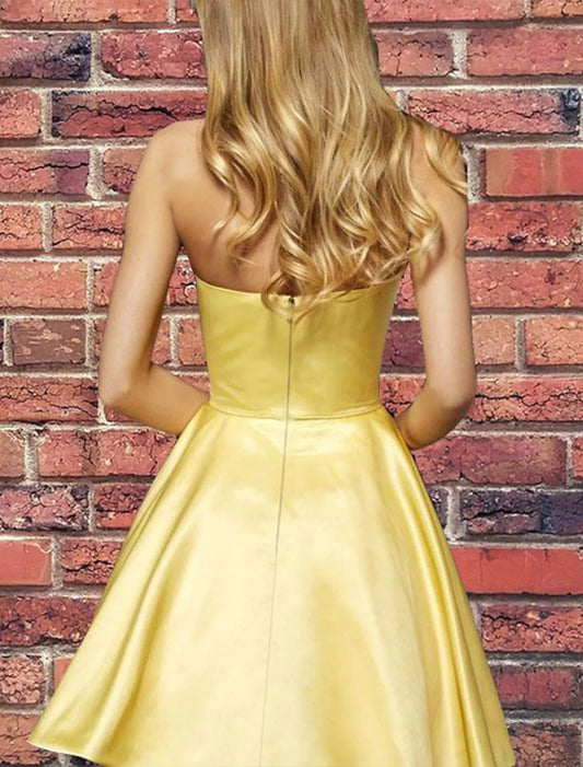 A-Line Hot Flirty Homecoming Cocktail Party Dress Strapless Sleeveless Short / Mini Satin with Sleek Pleats