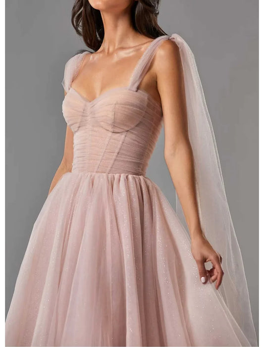 A-Line Prom Dresses Elegant Dress Homecoming Floor Length Sleeveless V Neck Tulle with Draping Splicing