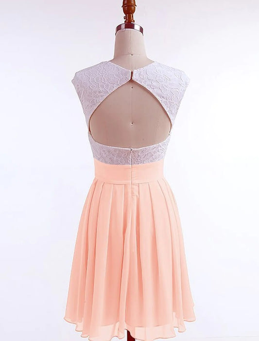 A-Line Beautiful Back Flirty Graduation Cocktail Party Dress Jewel Neck Short Sleeve Short / Mini Chiffon with Pleats