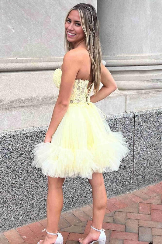 Cute A Line Light Blue Spaghetti Strap Tulle Lace-Up Back Short Homecoming Dresses with Appliques