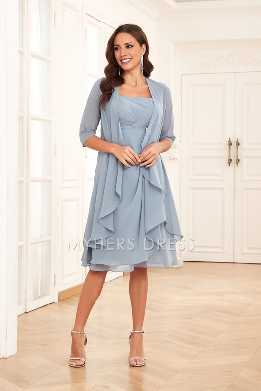 My Hers New Product Mother of The Bride Dress 2 Pieces Half Sleeve Chiffon Pleated Elegant Charming Wedding Guests Dresses
