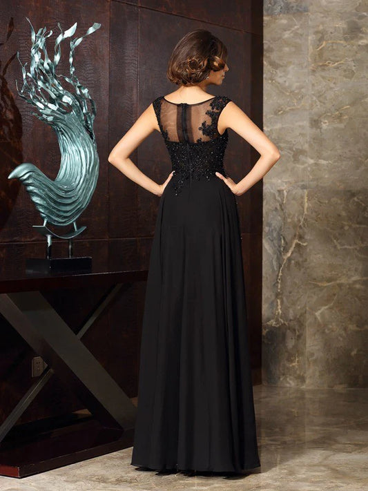 A-Line Princess Scoop Applique Sleeveless Long Chiffon Mother of the Bride Dresses