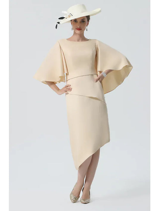 Mother of the Bride Dress Elegant Jewel Neck Knee Length Charmeuse Half Sleeve with Tier