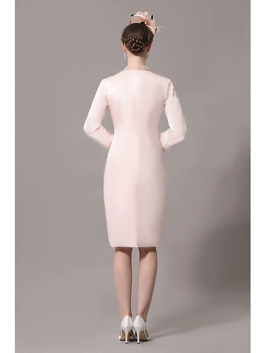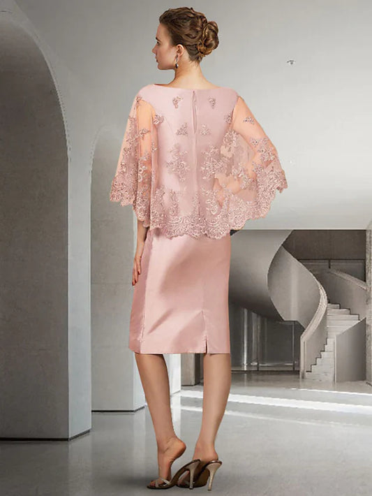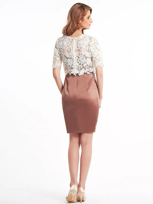 Mother of the Bride Dress Elegant Bateau Neck Knee Length Lace Satin Half Sleeve with Lace Appliques