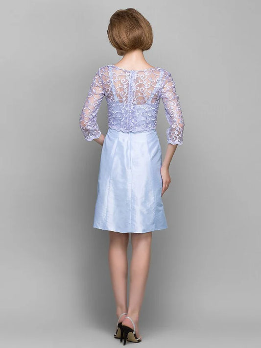 Mother of the Bride Dress Elegant Jewel Neck Knee Length Lace Charmeuse 3/4 Length Sleeve with Appliques