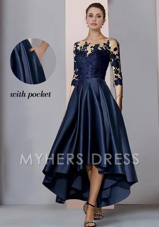 My Hers New Product Mother of The Bride Dress High Low with Pockets Lace Appliques Satin Elegant Dresses Wedding Guests Dresses