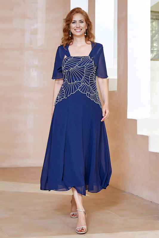 My Hers New Product Mother of The Bride Dress 2 Pieces with Jacket Sequins Lace Fashion Chiffon Wedding Guests Dresses