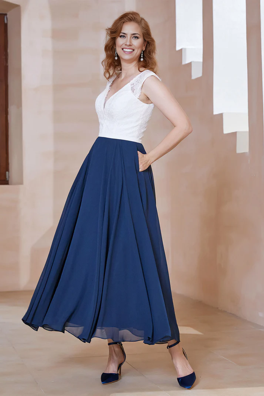 Fall November December Wedding Guest Dress Mother of the Groom / Bride Dresses Deep V Neck Lace Chiffon With Pockets Dress