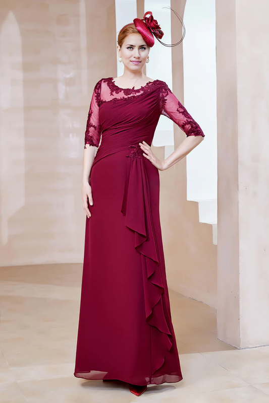 Fall November December Wedding Guest Dress Mother of the Groom / Bride Dresses Scoop Neck Lace Sheath Long Dress