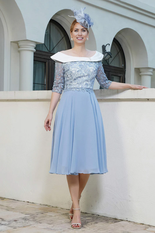 Fall November December Wedding Guest Dress Mother of the Groom / Bride Dresses A-Line Modest Scoop Tea-Length Dress