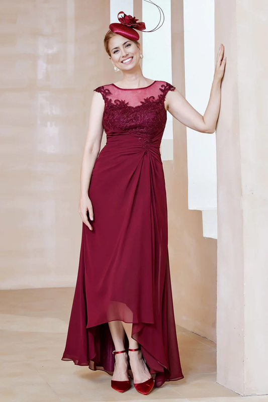 Fall November December Wedding Guest Dress Mother of the Groom / Bride Dresses Illusion Neck Asymmetrical Chiffon Dress