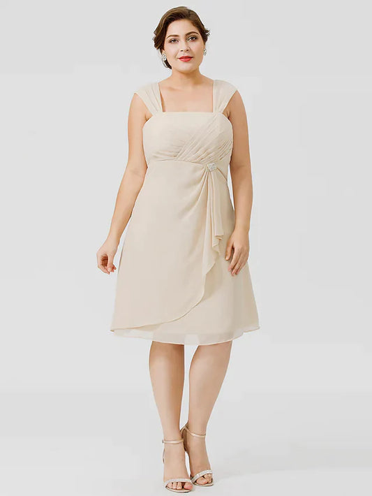 Mother of the Bride Dress Plus Size Elegant Straps Knee Length Chiffon Sheer Lace Sleeveless with Criss Cross