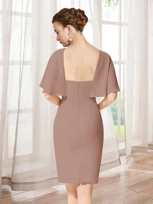 Mother of the Bride Dress Elegant Jewel Neck Short Mini Chiffon Short Sleeve with Ruffles