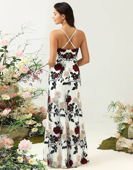 Mermaid Spaghetti Straps Flower Printed Wedding Guest Dress