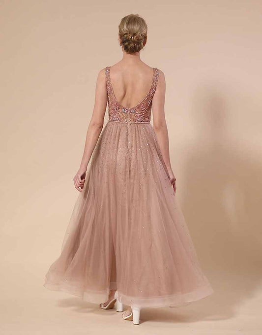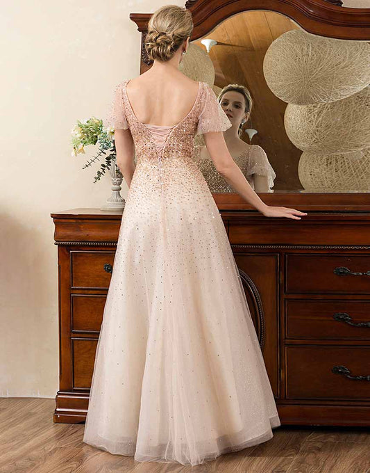 Blush Beaded A Line Sparkly Mother of Bride Dress
