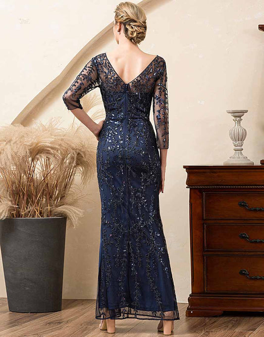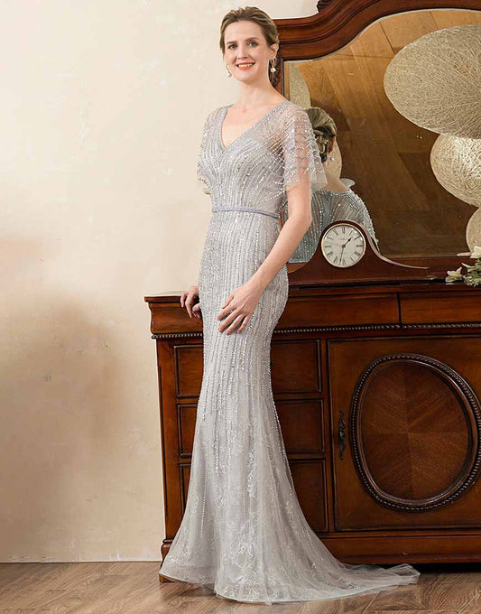 Beading V-neck Glitter Mermaid Mother of Bride Dress