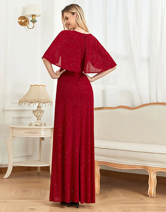 Glitter V-Neck Burgundy Mother of the Bride Dress with Cape