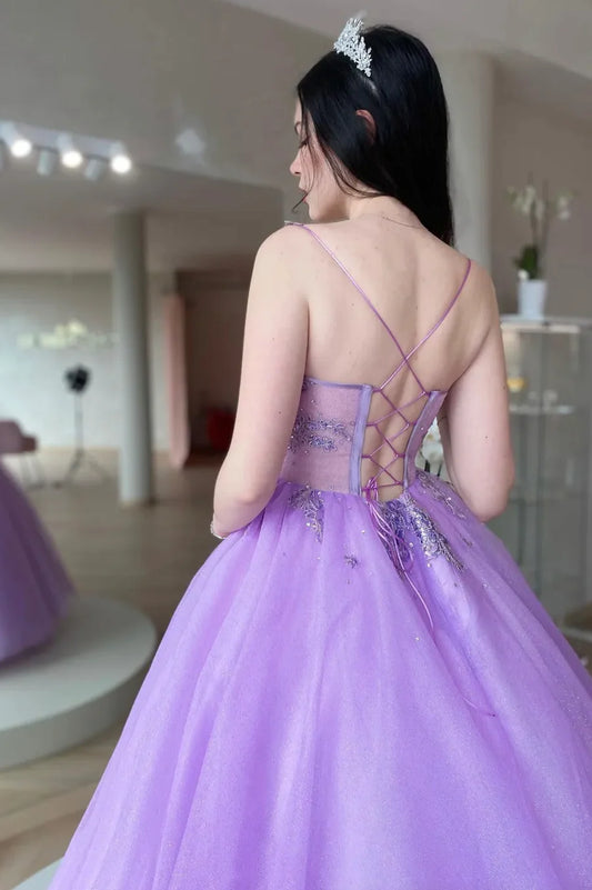 A-Line Sparkling Shine Evening Party Dress Champagne Tulle Sequins Long Prom Dress