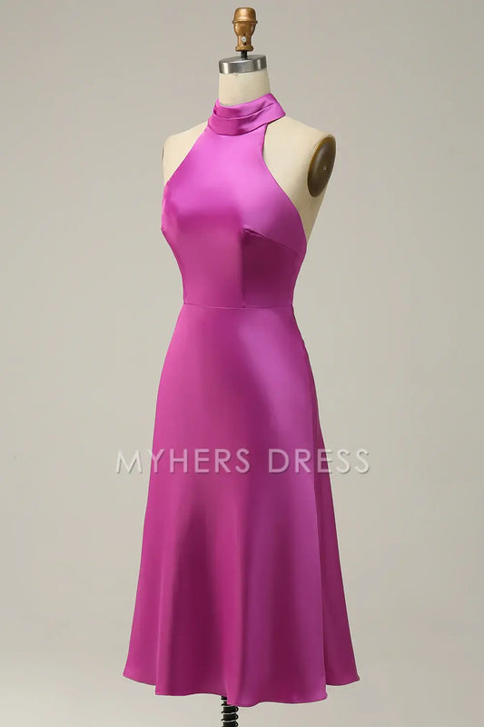 My Hers Ladies Formal Dress Fashion Sheath Halter Neck Open Back Short Skirt Simple Prom Dress
