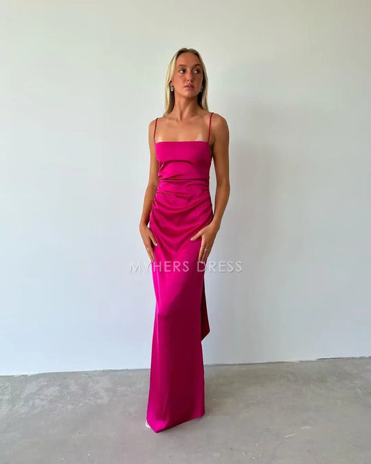 My Hers Prom Dress Satin Sheath Spaghetti Strap Sleeveless Mid Waist Backless Side Fork Sexy Charming Ladies Formal Dress