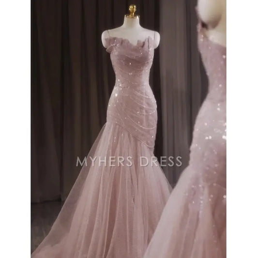 My Hers Prom Dress Shiny Tulle Mermaid Spaghetti Strap Sleeveless Fairy Fantastic Ladies Formal Dress