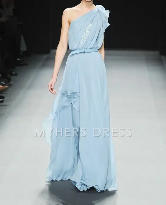 My Hers Prom Dress One Shoulder A Line Chiffon Ruched Irregular Romantic High Quality Ladies Formal Dress