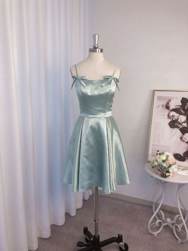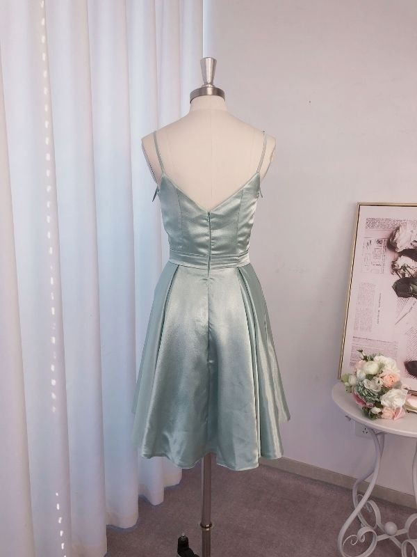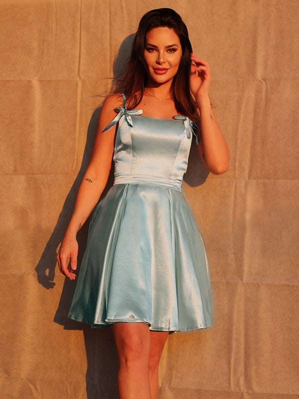A-Line/Princess Ruffles Woven Satin Straps Sleeveless Short/Mini Cocktail Dresses