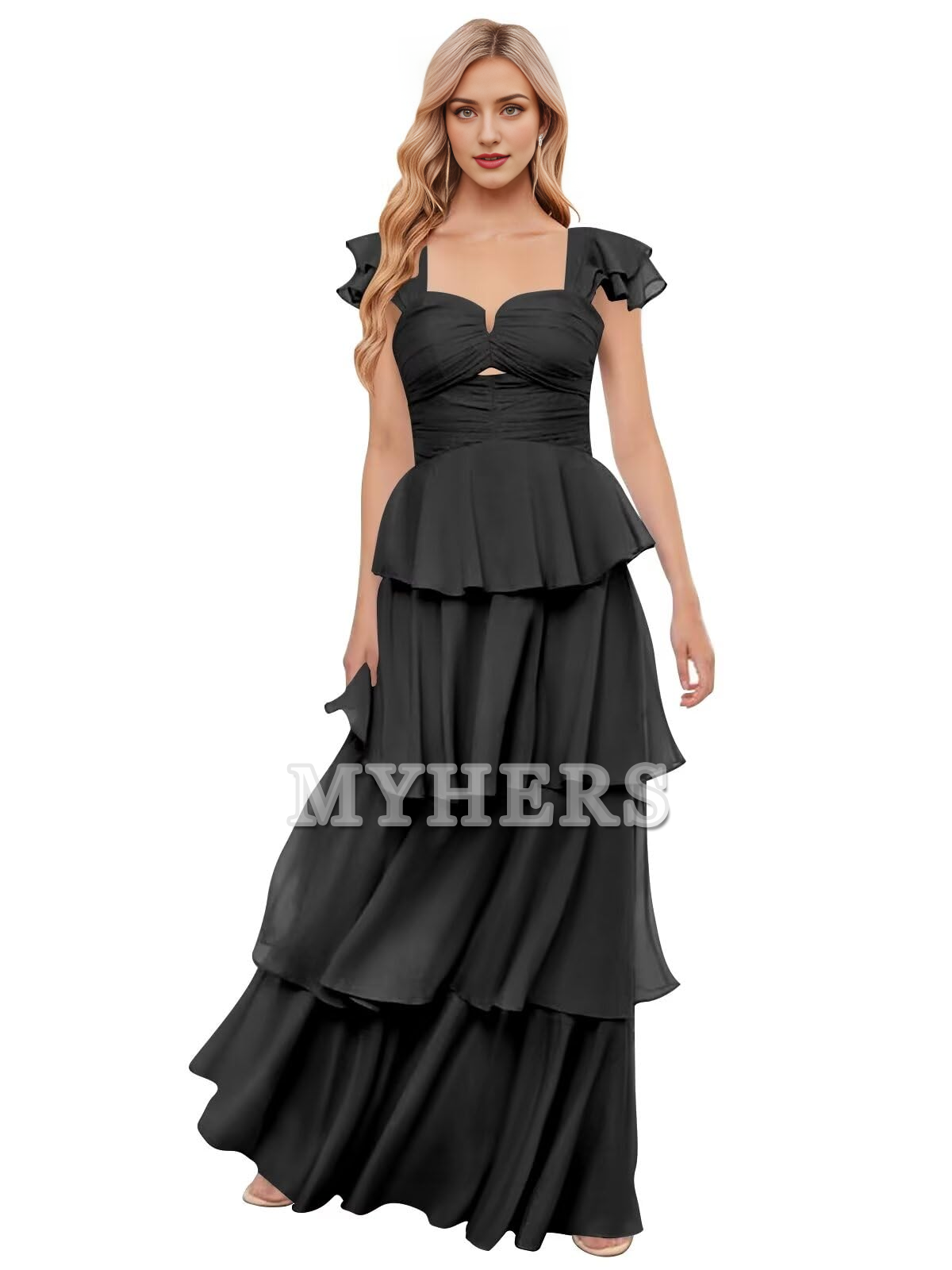 Elegant Chiffon layering Backless Off The Shoulder Long Bridesmaid Dresses Wedding Guests Dresses