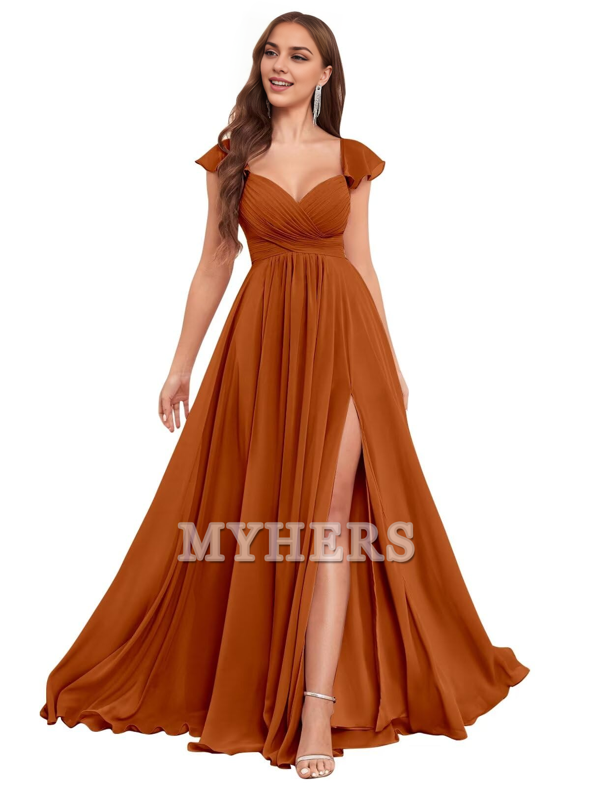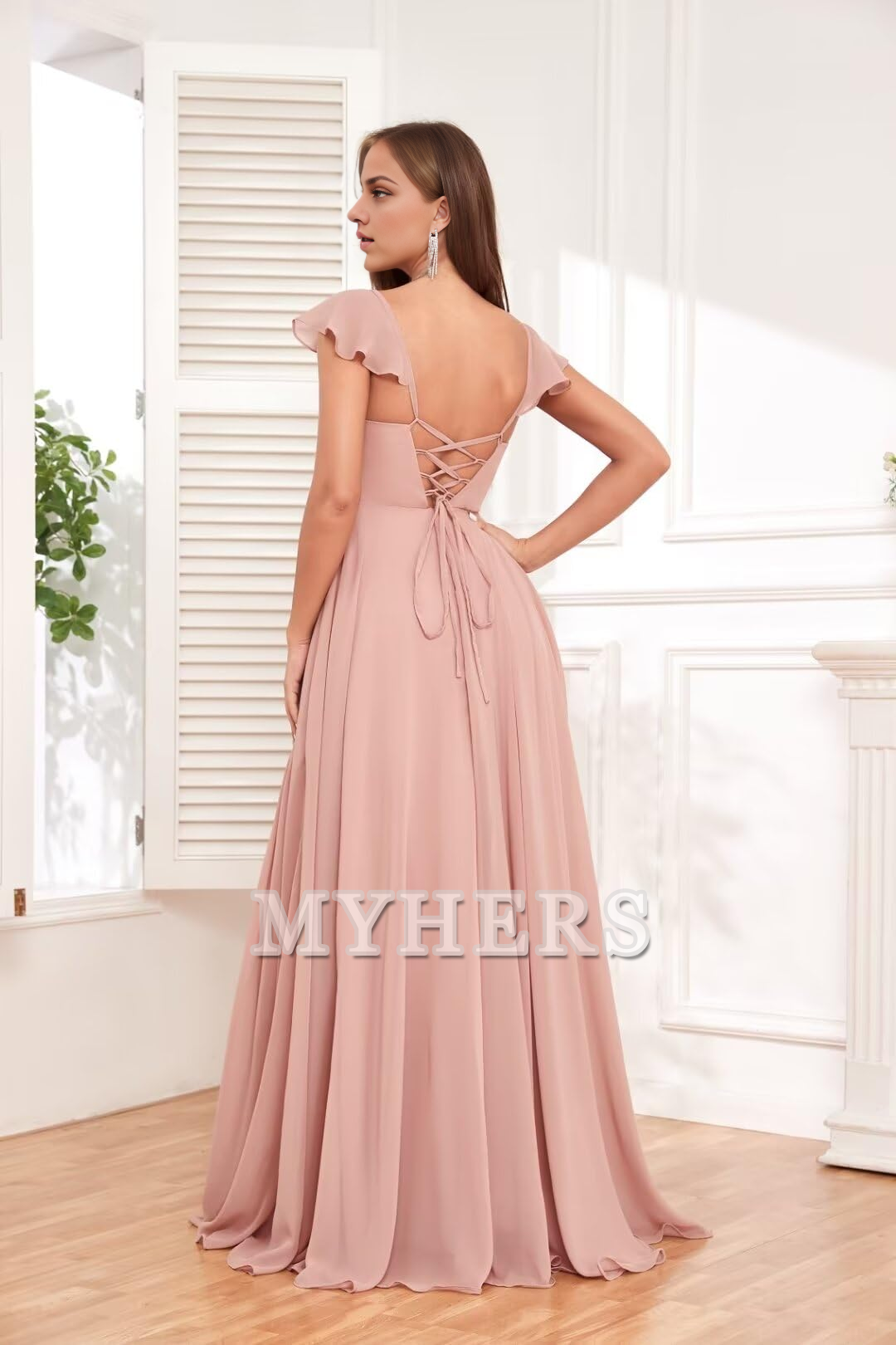 Elegant Ruffle Chiffon Side Fork Pleated Backless Charming Bridesmaid Dresses Wedding Guests Dresses