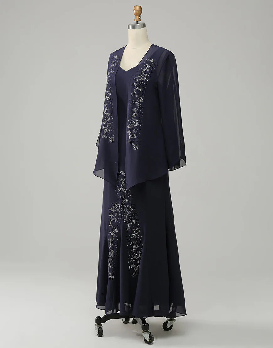 Navy Two Piece Sparkly Beaded Mother of the Bride Dress