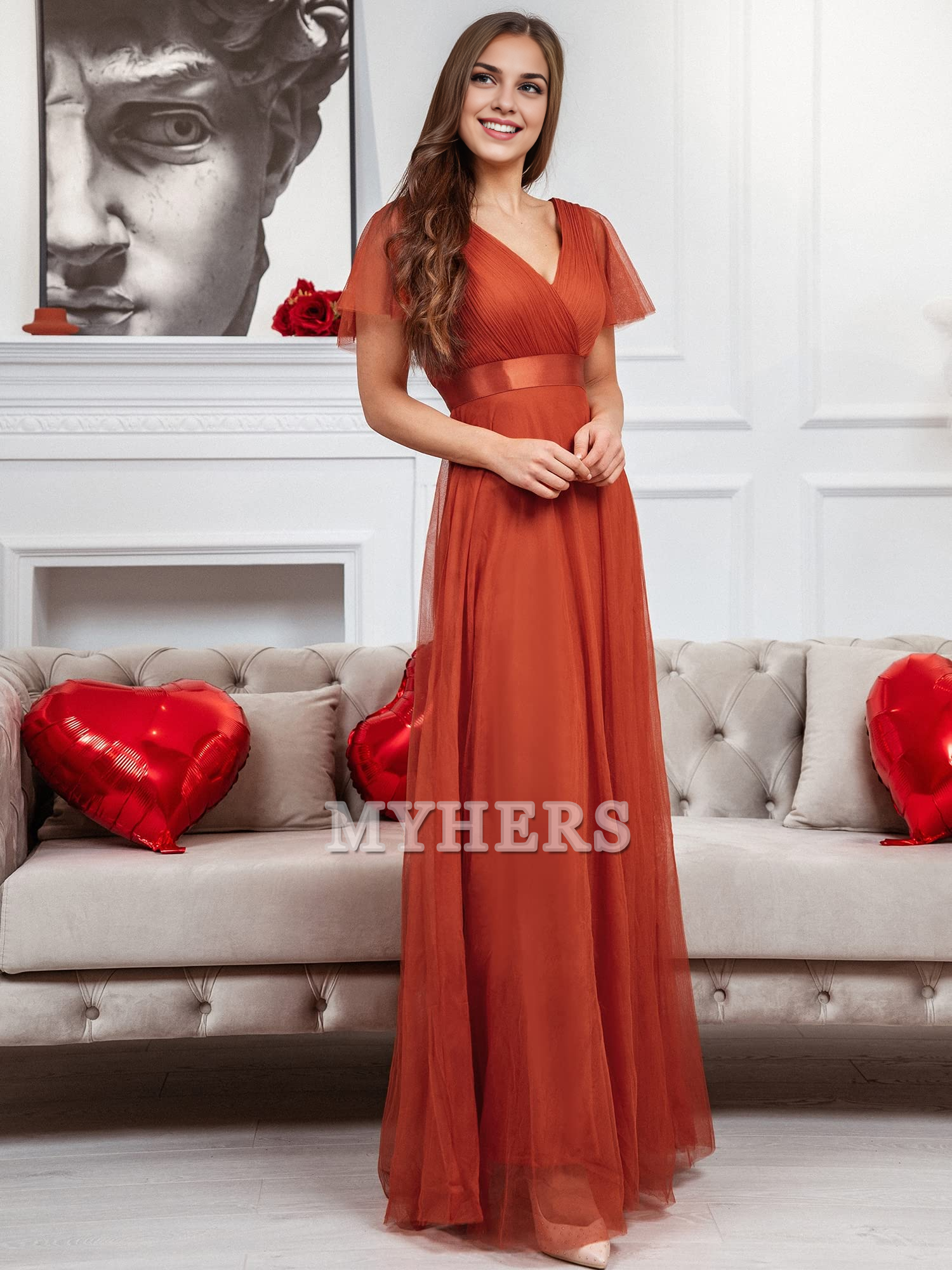 Pleated V-Neck Empire Waist Front Wrap Romantic Tulle Elegant Bridesmaid Dresses Wedding Guests Dresses